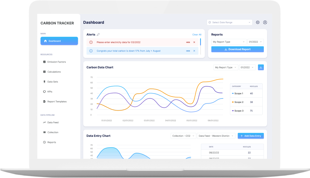 Scope 1, 2 and 3 tracking, customizable dashboard and ability to set/track progress towards carbon reduction goals.